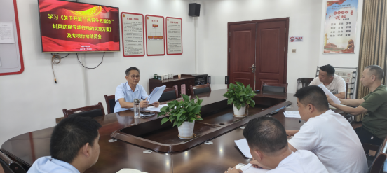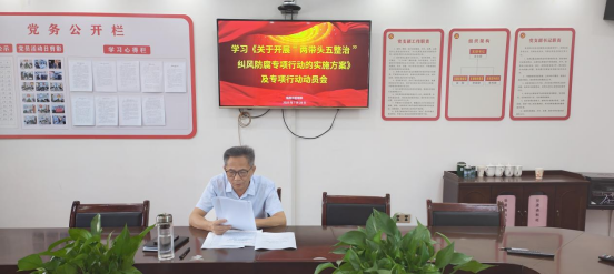 7月28日,岳阳市住房公积金管理中心临湘党支部召开“两带头五整治”纠风防腐专项行动专题学习暨专项行动动员会,由支部书记余文辉主持,全体党员参加会议。
