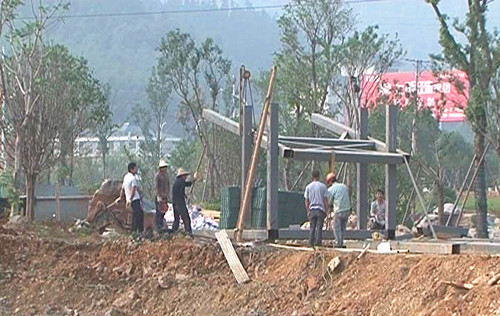 在施工现场记者看到,机械轰鸣,施工人员正在抢抓晴好天气,对在建的全域旅游服务中心焊接钢梁和砌行墙,整个施工现场呈现出一派繁忙而有序的景象。