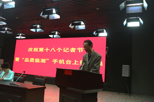 11月7日上午,我市庆祝第十八个记者节暨“品质临湘”手机台上线庆典仪式在市广播电视台举行。市领导李美云、余岳雄、李孟阳、孙少游、李垂利、熊丽、马榕等出席,各镇(街道)、市直部门单位主要负责人参加仪式。庆典仪式由市委常委、宣传部长李孟阳主持。