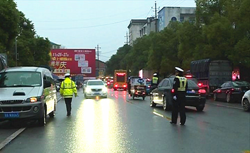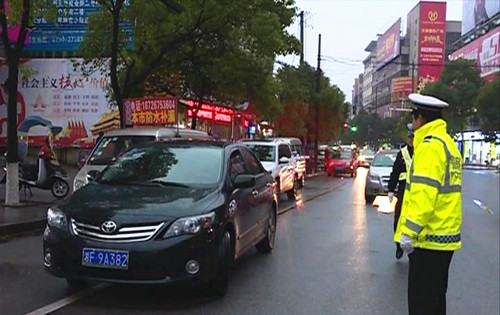 近日,我市境内持续降温,连续阴雨天气给车辆和行人出行带来了极大的不便,也给路面交通执勤工作加大了难度。对此,城区交警加大警力上路执勤,全力为市民的安全出行保驾护航。