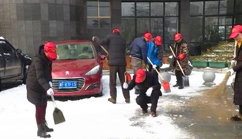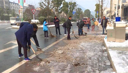 近日来,我市进入低温雨雪冰冻天气,为及时清除积雪积冰,确保道路交通安全和人民群众正常生产生活,1月29日一大早,市直各单位工作人员齐装上阵,利用铲锹、木推、扫帚等工具,清除路面积雪。用自己的实际行动,温暖了整个临湘。让大家在欣赏美丽雪景的同时,眼前再添一道扫雪人靓丽的风景!