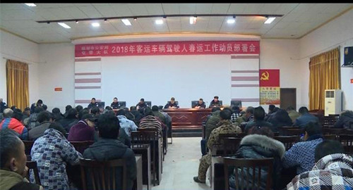 1月31日晚,市公安局交警大队组织全市客运车辆驾驶人召开2018年春运工作动员部署会。