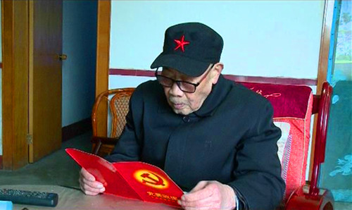 刘学初老人:我是56年入党的,到现在已经有62年了,我看到超过60年(可以)作一个纪念,自己多寄点党费给党组织,主要感谢党对我的培养教育。