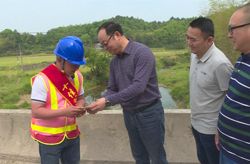 在长桃公路土墩桥施工路段,张汉华一行与李胜祥亲切交谈,送上慰问金,并勉励他继续发扬吃苦耐劳的精神,当好人民的“公路护士”。