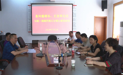 7月2日下午,市委常委、组织部长易兴建,市人大常委会副主任王友华与所联系统一战线代表人士开展谈心谈话活动。