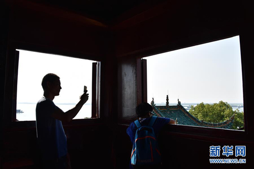 游客在岳阳楼洞庭湖风景名胜区游览(8月1日摄)。新华社记者 金立旺 摄
