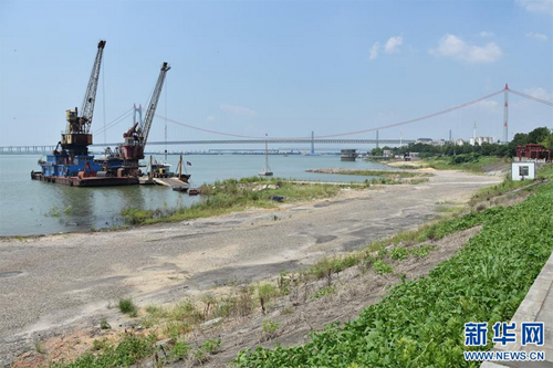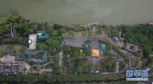 岳阳楼附近原水上砂石交易市场的码头和堆场,如今已经被关闭、整治(7月20日摄)。新华社记者 白田田 摄