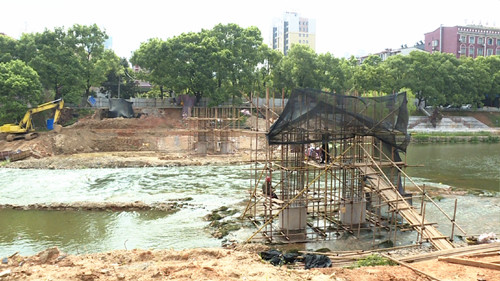 铁汉生态长安河治理项目副经理蒋沛峰说:“长安河人行天桥已经完成了水下4根桥墩部分的浇筑,预计8月中旬完成水上部分的结构浇筑,9月份开始箱梁吊装,预计10月底全面竣工。”