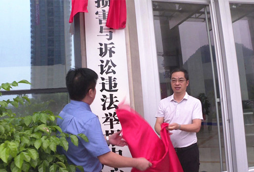 9月6日上午,市人民检察院举行“公益损害与诉讼违法举报中心暨12309检察服务中心”揭牌仪式。市委常委、政法委书记胥春华与市检察院检察长吴春生为举报中心揭牌。