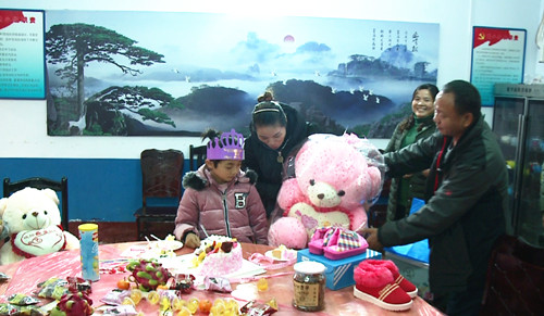 11月14日下午,岳阳惠临公司扶贫工作队队员带着蛋糕、水果、布娃娃等礼物来到羊楼司镇新屋村,为家住新屋村患自闭症的小梅星过了一个终身难忘的十岁生日。
