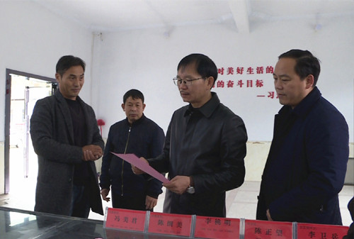 李孟阳一行先后前往该镇詹桥社区、水泉村、三界村、余湾村等地,查看每个村扶贫攻坚挂图作战公示栏,翻阅台账,详细了解该村扶贫攻坚进展情况。李孟阳强调,今年是脱贫攻坚作风建设年,相关单位要充分利用好当地的优势,做好乡村振兴结合文章,发展特色产业,让老百姓早脱贫、真脱贫。
