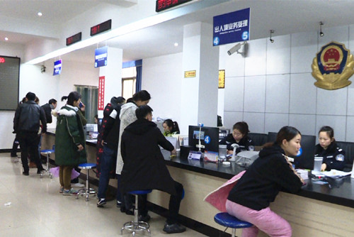 记者在市政务中心服务大厅看到,人口与出入境办证窗口前都排起了“长龙”,工作人员有条不紊热情地接待着前来办理业务的市民。