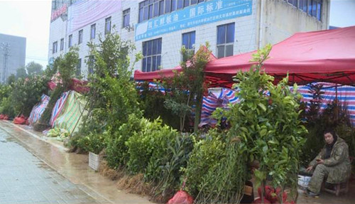 在苗木销售现场,记者看到,各个摊位前都摆满了金钱橘、杉树、茶树、乌梅、柿子树、梨树等品种繁多的树苗,应有尽有。经营者在一旁还摆放了苗木知识介绍卡片,方便市民了解苗木生长情况,吸引了许多市民前来咨询购买。