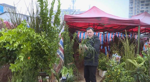 这位朱师傅销售花卉苗木有好几年,在聂市镇种植了大片花卉苗木,每年这个季节都要到这里进行销售。