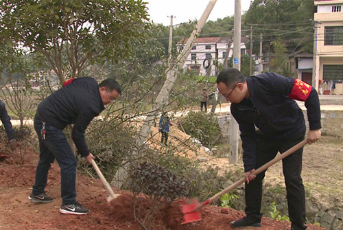 植树现场,参加活动的纪检监察干部热情高涨,有的挥锹给树坑培土、有的用力将填好的土培实、有的俯身扶正新种下的树苗。在有条不紊的合作之下,一棵棵刚栽种的树苗站直了身姿,展现出勃勃生机。当天共栽植红花檵木、桂花树500多棵。