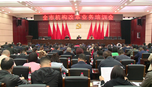 4月15日下午,全市机构改革业务培训会召开。市委常委、组织部长易兴建出席并讲话,市直涉改行政事业单位有关负责人、市委深化机构改革领导小组办公室及各专项小组成员,各镇(办事处)组织委员参加会议。