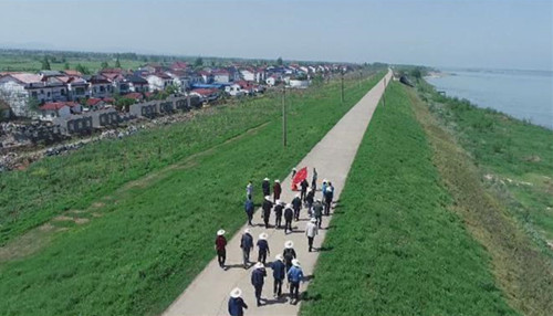 走上长江大堤,一江碧水尽收眼底,大堤内外新植的树木在春风里已吐新绿,坡岸碧草连天,放眼远望,远处的村庄白墙彩瓦,整齐划一,一派欣欣向荣的景象,得到参加踏查的委员们的点赞。
