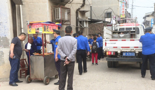 4月25日早上,市教体局、市城管局等多部门对全市范围内学校周边食品安全开展联合整治行动。