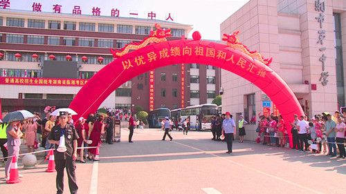 据了解,今年全市唯一的高考考点设临湘一中,校门紧挨湘北大道(G107国道),路情复杂,车流量大,人流量大。为有力应对,确保安全,市公安交警部门通过拉警戒线、摆警示牌、疏导交通、车辆限速、禁止鸣笛等措施,确保了道路畅通、安静、安全。