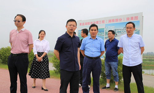 谢胜一行先后来到黄盖湖综合治理项目、铁山咀电排、江南镇长江村长江岸线、临湘塔等地,详细了解长江、黄盖湖目前水位、电排排渍口渍水达标排放、村庄清洁行动整治等项工作情况。