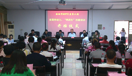 7月19日上午,由市人社局组织举办的全市2019年度第二期贫困劳动力、“两后生”职业技能培训班在市职业中专开班。全市各镇(街道)110名贫困劳动力和“两后生”将参加为期一周的集中培训。