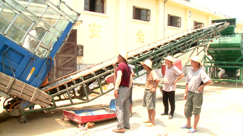 7月23日,记者在原定湖粮店早稻收储点看到,一辆辆运粮车辆正在排队进行清杂入库,标志着我市夏粮收购工作正式启动。