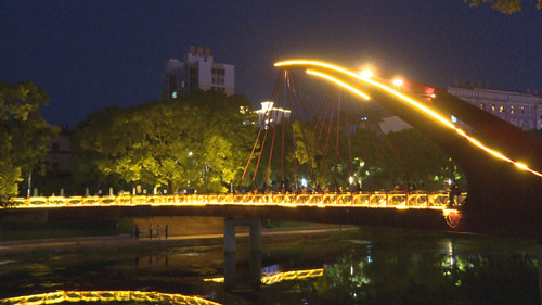 一到夜间,通过跨河天桥去星河广场散步游玩的市民络绎不绝。随着灯光亮起,垂钓造型的天桥美轮美奂,成为我市“中国浮标之乡”的又一道靓丽风景,赢得市民交口称赞。