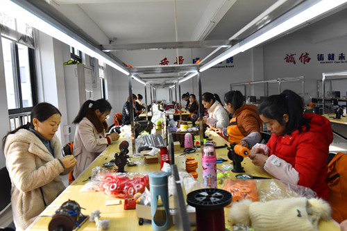 贫困户刘伟英说:“我是坦渡的,住在安置小区,政府安排我们在这里做事,拿到2千多元每个月。”
