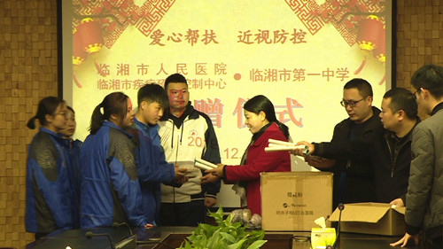 12月18日上午,市人民医院、市疾控中心联合天明视光眼科诊所,在市一中举行近视防控爱心帮扶捐赠仪式,该校52名贫困学生获得捐赠。