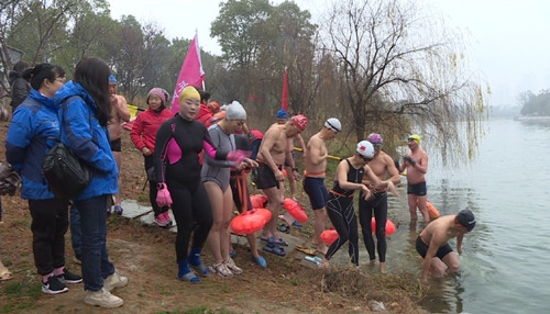 下午4点,近百名冬泳爱好者齐聚白云湖公园,参与活动的冬泳爱好者中既有老者,也有20多岁的学生,其中还有多名女性朋友。