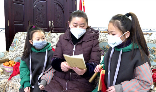 方四查孙女张博妮说:“奶奶写的快板,请文化站的叔叔修改了,妈妈帮我们拍了视频,通过微信的形式发给了大家,我希望能够通过我们的宣传能和大家一起战胜病毒。”