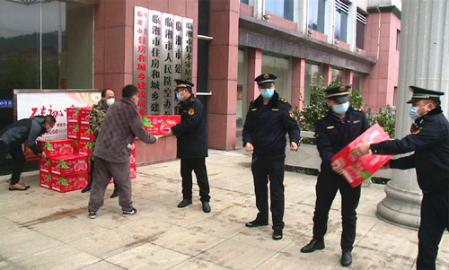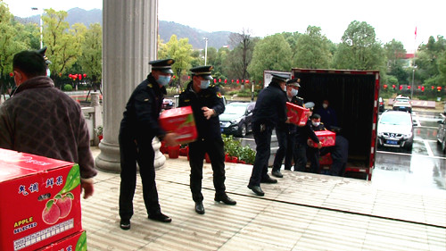 2月6日下午,市花漾果水果超市负责人将价值1万元的100箱苹果送到市城管局,感谢春节期间始终坚守在抗击疫情一线、全力守护全市人民群众生命安全的城市管理工作者。