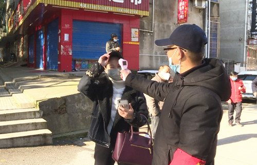 2月17日一大早,在长安街道办事处长安社区安居东巷小区进出口,3名“红袖章”正在忙碌着,他们为进出小区的车辆和人员进行出入登记,并做好体温检测。