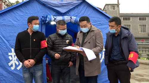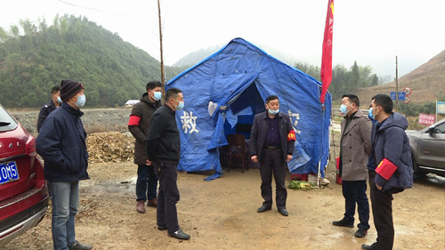 2月28日上午,春雨绵绵。在海拔近800米的马颈防控值守点,龙窖山村党总支部书记潘梅芳带领三名志愿者,迎着寒风冷雨坚守在防控第一线。他们用一顶简陋的帐篷,24小时不分昼夜坚守,支撑起守护辖区群众安全的“保护伞”。