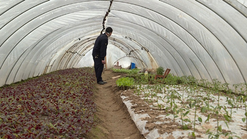 记者来到离田间不远的大棚。走进这儿,如同走进了温室。大棚里,大白菜、四季豆、丝瓜、西红柿、苋菜等种苗茁壮成长,绿意融融。