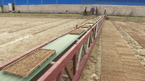 今年,聂市镇早稻播种面积为2万多亩,早稻育秧面积900多亩,其中集中育秧510亩。为提高效率,解决秧盘快速传送的问题,兆丰水稻种植专业合作社投入研发资金6万余元,在市农业农村局农技人员的精心指导下,通过不断摸索与改进,自主设计研发了一款42米长的自走式秧盘输送带“智取”秧苗,逐步实现了从传统育秧模式向现代化育秧模式的转型升级。