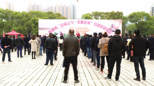 目前,全市新冠肺炎疫情防控工作已进入新阶段,我市餐饮服务行业正逐步恢复正常秩序。为了优化就餐方式,摒弃传统餐桌陋习,阻断餐桌上的疾病传染,4月2日上午,市委宣传部、市新时代文明实践中心、市市场监督管理局、市卫生健康局联合倡议,倡导在全市开展“公筷公勺、文明餐桌”行动。市委常委、宣传部长李孟阳、副市长刘如乐出席启动仪式。