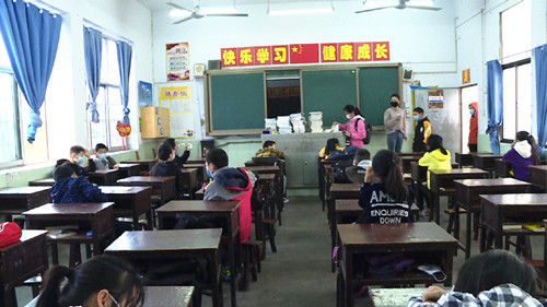 学生报名结束后,老师开始给学生上开学第一课,重点宣传普及新冠肺炎防控知识,引导学生保持平稳的心情,勤洗手,做好自身卫生防护。