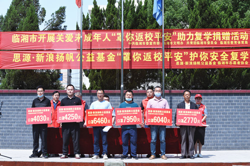 5月13日上午,市委宣传部、团市委、市文明办、市志愿者协会等部门联合思源·新浪扬帆公益基金在市第七完全小学举办关爱未成年人“罩你返校平安”助学捐赠活动。部分乡村教师、学生代表参加捐赠活动。