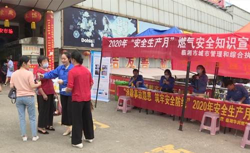 在湘北大市场门前,市城管局与华润燃气公司工作人员正在向市民们宣传安全用气知识。通过宣传册、展板展示和工作人员讲解安全用气常识、燃气用具使用规范、燃气泄漏应急处置、燃气管线保护等知识,让市民的安全意识显著提高,还有部分市民现场预约工作人员上门检测,排除安全隐患。