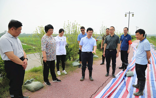 谢胜一行先后来到新长垸、叶家桥垸、太阳湖垸、黄盖湖垸、铁山嘴电排、烟波尾电排、谷花电排和长江大堤防汛指挥部等地,实地查看各垸水位、堤防、巡堤查险、人员值守、险情处置和电排站运转等情况。