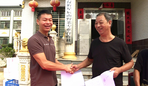 羊楼司镇明星村建档立卡贫困户说: “绿野星辰今天跟我们签了合同,今后我们养的鸡,种的菜都不愁销路了,我很开心。”
