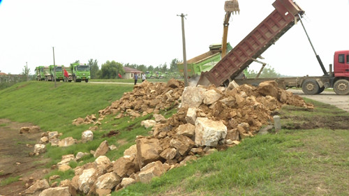 长江大堤养护中心主任沈华兵说: “在大清江险工险段准备储备2000吨块石,现在已到位1200吨,预计在今天晚上9点可以调运完毕,目前正在加紧运输中。”
