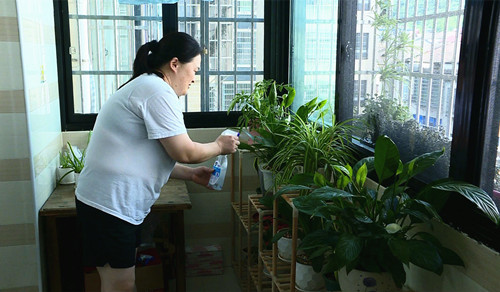 肖丽君说:“我觉得在家里种一点花花草草,感觉家里比较清新、温馨。以前是没有这个条件,现在有这个条件了就在家里种一点自己喜欢的花。”