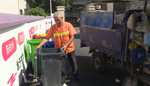 在市酒厂小区,环卫工人正在收集运输居民们分类放好的垃圾。在市住建局与市城管局宣传与推动下,垃圾分类已成为小区的新风尚。