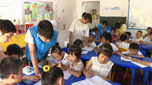 “唱歌跳舞、读书写字、做游戏”,这是整个暑假忠防镇的留守儿童们每天在儿童服务站的一个缩影。