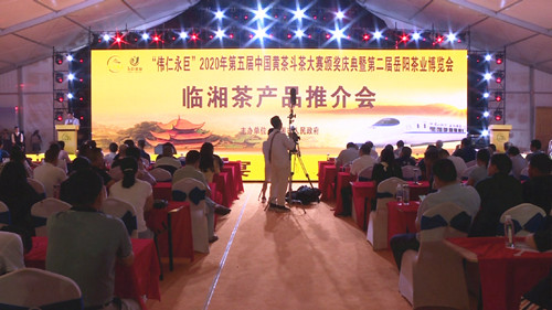 2020年第五届中国黄茶斗茶大赛颁奖庆典暨第二届岳阳茶业博览会在岳阳市南湖广场举行。昨晚,大会举行临湘茶产品专场推介活动,大力推介我市茶产品。岳阳市政府副市长邱虹,老领导黄甲喜、陈志刚等与我市领导谢胜、余岳雄、孙少游、夏逢响等参加活动。
