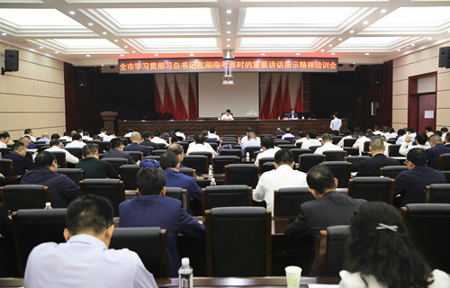 谢胜强调,要掌握习近平总书记在湖南考察时的重要讲话精神实质,学懂学深悟透彻,抓住三个高地、四新要求、五大任务核心要义,深入细致学,逐字逐句仔细领会,全面系统把握,确保学深学懂学透;要持之以恒学,把习近平总书记的殷殷嘱托和对我们工作的要求铭记于心,时刻做到用习近平总书记的重要讲话精神来指导工作,推动实践;要融会贯通学,做到与习近平新时代中国特色社会主义思想、巩固深化“不忘初心、牢记使命”主题教育成果、做好本职工作三个结合,把习近平总书记的讲话精神落实到每一项工作中去。要强化实干担当,即知即用见行动,树牢产业强市导向,着力攻园区、强工业;坚持农业农村优先,不断添活力、兴乡村;坚决守护一江碧水,加快治污染、优生态;聚焦群众急难愁盼,扎实办实事、促和谐;传承发扬红色基因,持续抓队伍、提效能。要紧扣年度目标,对标对表争先进,开足马力上项目,抢抓机遇争资金;要扛稳责任守底线,抓好民生保障、信访维稳和安全生产工作;要查漏补缺扫好尾,在如期完成各项工作任务的同时,在岳阳乃至全省争先进。
