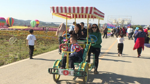 据介绍,桃林镇菊花博览园内栽种的菊花品种超过2000余种,园内还增设了儿童游乐场、观光脚踏车、千人共舞等娱乐项目,吸引了武汉、长沙以及周边县市大量游客前来秋游赏菊,对当地的经济发展也起到了较好的带动作用。
