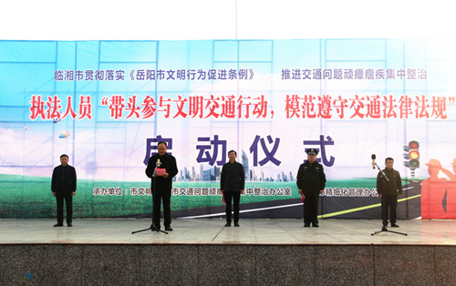 12月24日上午,我市启动执法人员“带头参与文明交通行动,模范遵守交通法律法规”活动,深入贯彻落实《岳阳市文明行为促进条例》,进一步提升城市文明程度和公民文明素质。市领导李孟阳、邓可杰、张国辉等出席启动仪式。